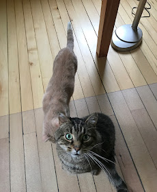 Millicent is so cute... she goes up to all the cats and offers the top of her head for them to wash. Most of them oblige!